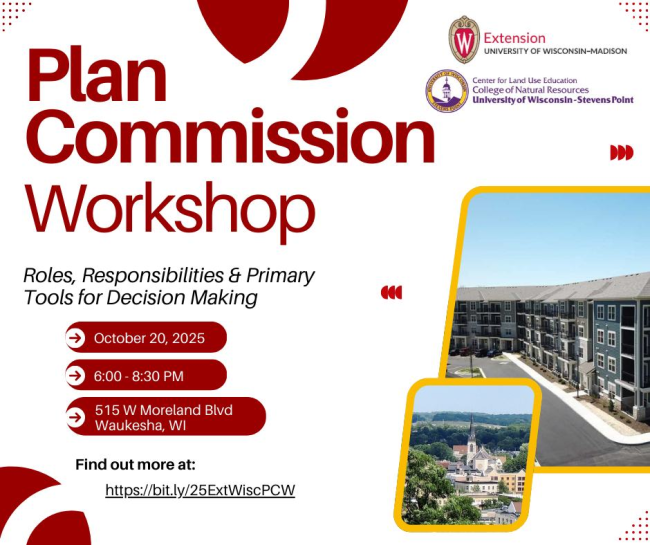 Are you new to your Plan Commission or local government role? Or maybe you just want a refresher on the fundamentals of land use decision-making? Join us for the 2025 Plan Commission Workshop on Monday, October 20, from 6:00β8:30 PM at the Waukesha County Administration Center.